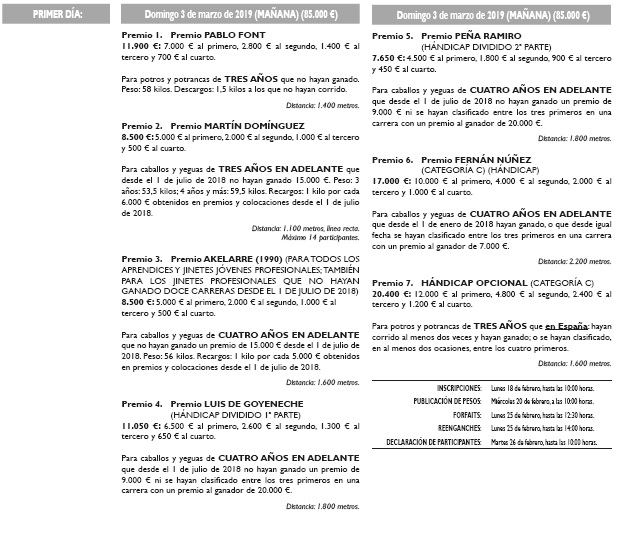 · Desde el domingo 3 de marzo hasta el 1 de diciembre se celebrarán un total 231 carreras en 36 jornadas, y se repartirán más de 3.600.000 € en premios